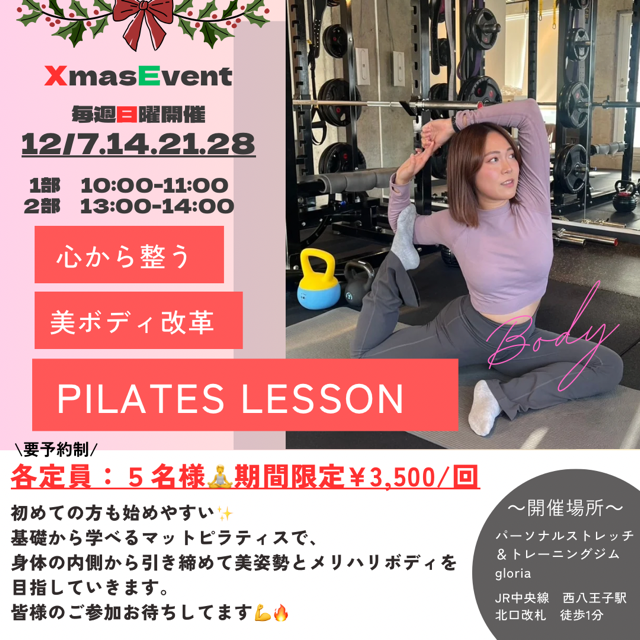 Gloriaのパーソナルストレッチ&パーソナル体験が通常¥8,000→無料にてお受けいただけます!!